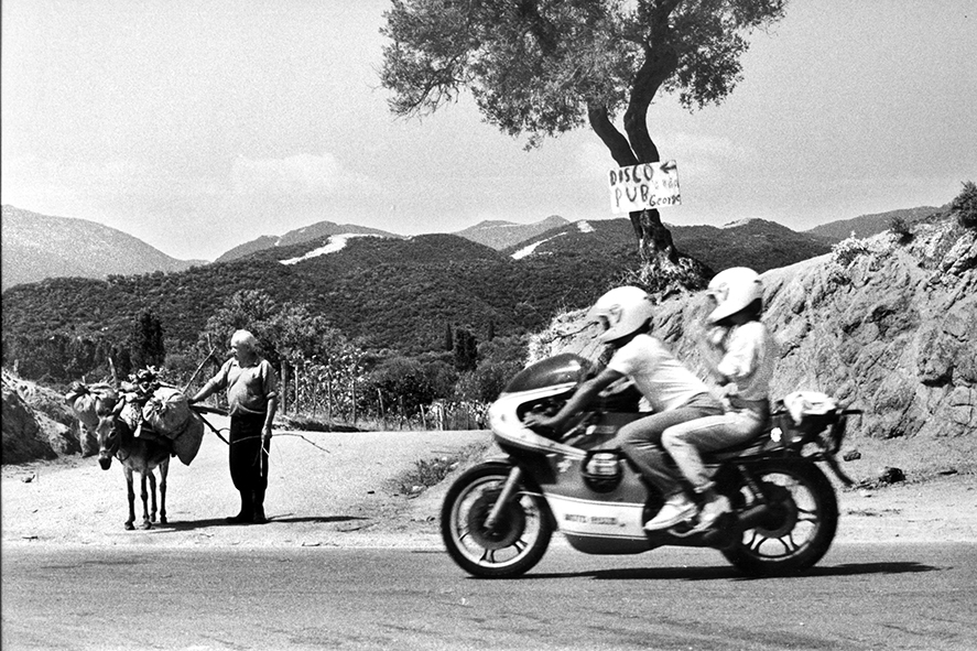 Antes de uma exposição individual em Milão, fotografei a Grécia por três meses. Ficamos primeiro em Kalamitsi, ao lado do Monte Athos, fomos a Turquia e, influenciados por escritos de Henri Miller, finalizamos a estadia na ilha de Corfu, ou Kerkira, na acolhedora vila Afionas.