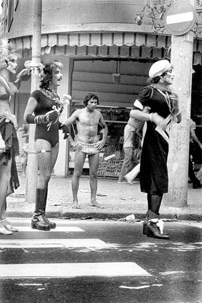 Observei, ao acompanhar a fotógrafa Ana Regina Nogueira – na entrada do Teatro São José, no centro da cidade e no desfile da Banda de Ipanema – que os travestis focalizados pela objetiva se dispunham prontamente a “fazer pose”, expressando um tipo de gesticulação estereotipada e caricaturesca da mulher, visando maior destaque e manchete. No carnaval são muitos os fotógrafos que registram aqueles travestis para revistas e jornais nacionais e internacionais, sendo sua presença gramatical uma forma de valorização e reconhecimento de seu bom gosto ou imaginação criadora. Juntamente com esse indivíduos de exagerada agressividade jocosa, outros pares mais discretos também se deixaram fotografar – pois na permissividade do carnaval, tudo, ou quase tudo, se explica.
