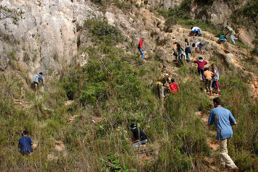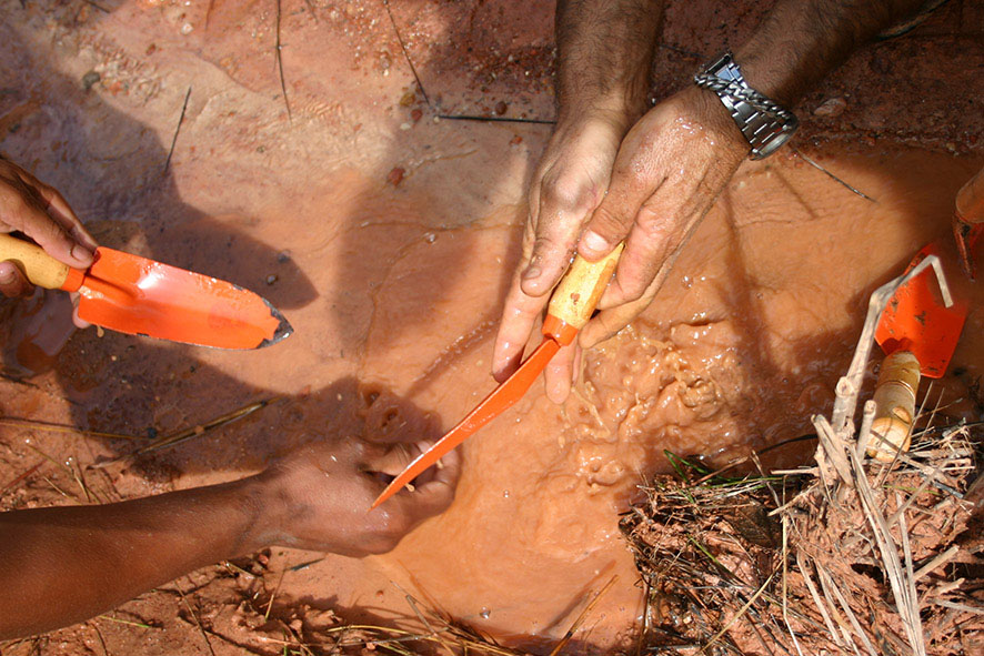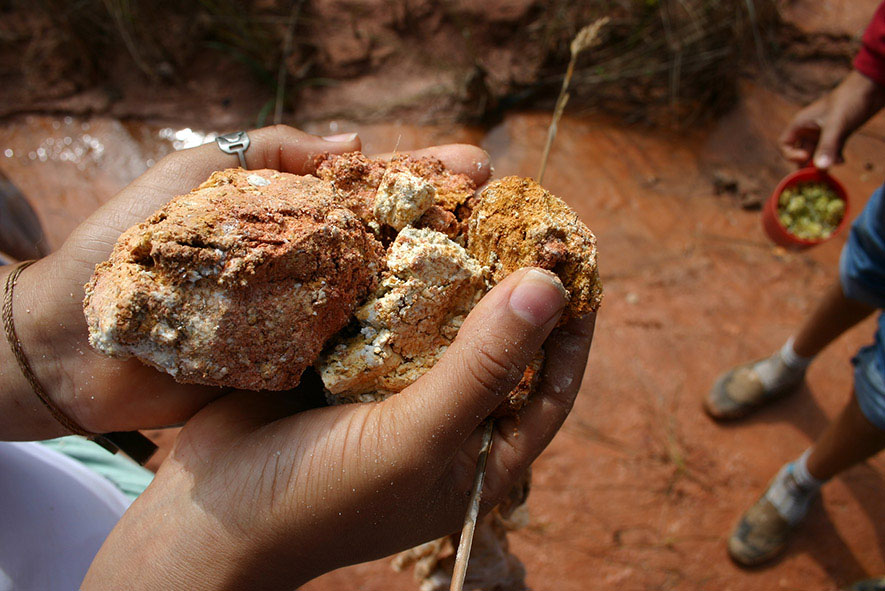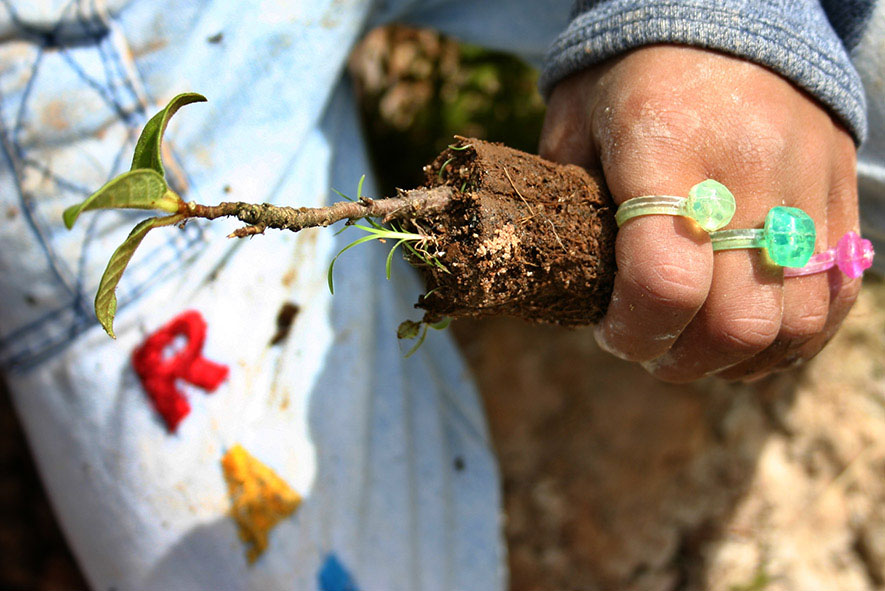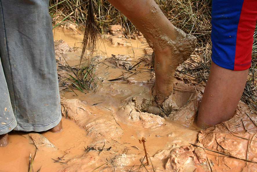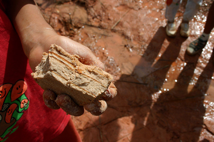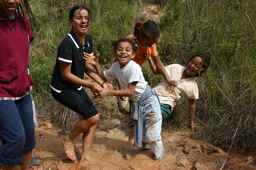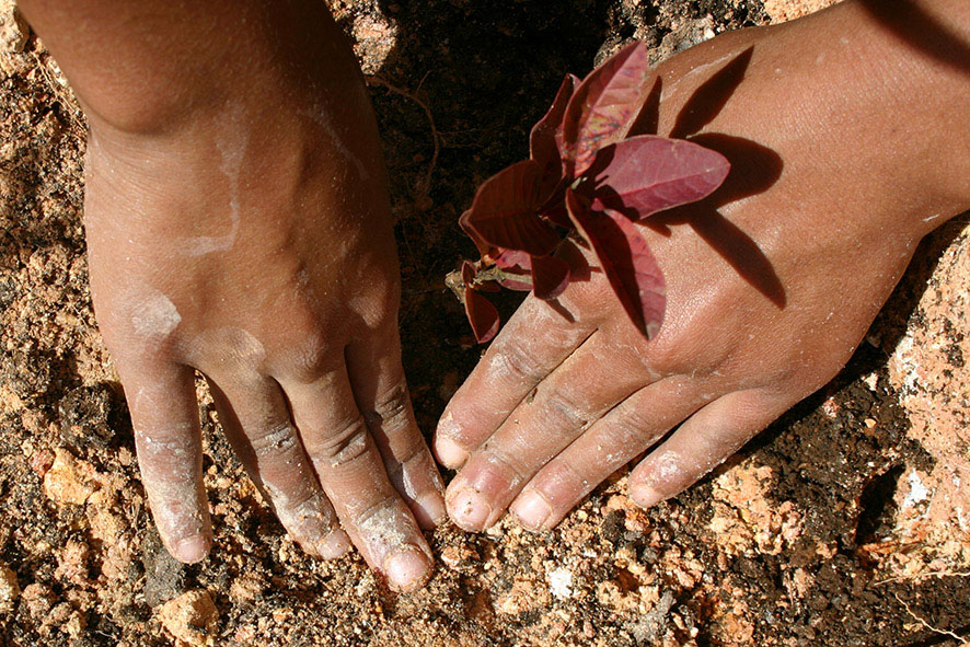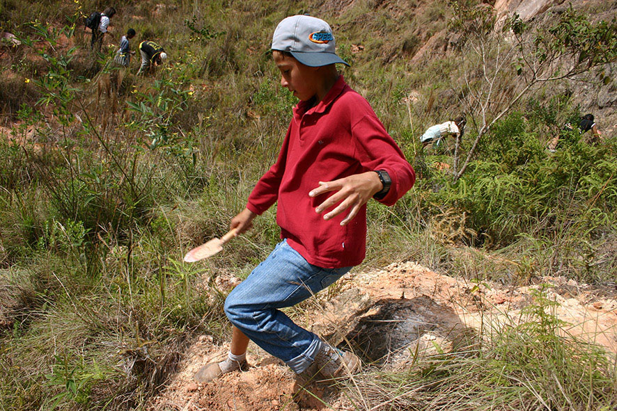 Voçorocas ferem a paisagem de vermelho. Provocadas pelo desmoronamento de terras, desnudam camadas inférteis do subsolo. Ameaçam a agricultura, as obras viárias e urbanas, assoreiam rios. Comuns em regiões onde houveram minerações, essa desoladora degradação ambiental é proveniente da ação do homem. Primeiro trabalho digital, fotografei movimentos de recuperação de uma voçoroca urbana para o projeto educativo “Maria de Barro”. O ensaio retrata um dia ensolarado de inverno passado em uma voçoroca urbana. Um grupo de crianças de uma escola do município de Nazareno aprende a conhecer e respeitar o solo, e a plantar mudas da vegetação nativa. Seus professores buscam redefinir a relação humana com a água, o solo e a sociedade.